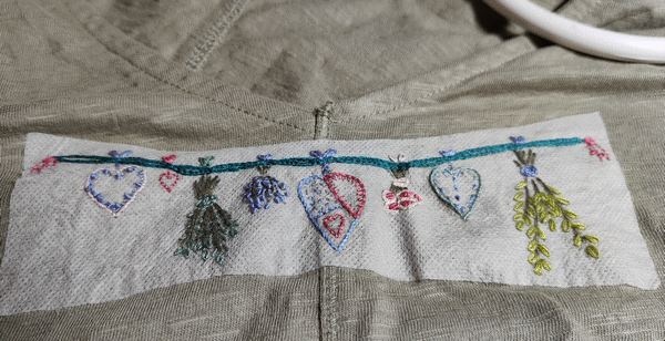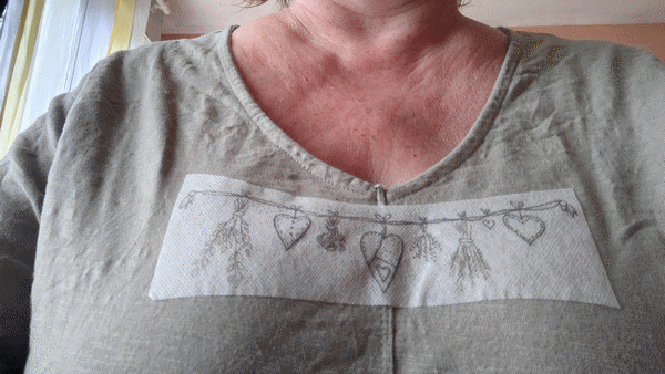 Modèle trouver sur le net, imprimer sur une feuille magic paper de DMC. Août 2023.