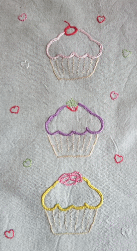 Torchon cup cake. Acheté à Cultura. Modèle trouvé dans la revue Broderie Créative n°67.