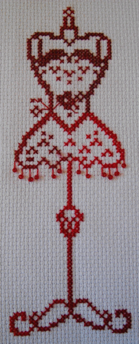 Mannequin, brodé avec le fil dégradé DMC 115, modèle de la Comtesse. Août 2011..