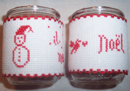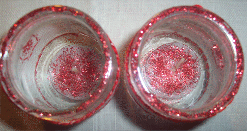 un pot en yaourt en verre et quelques paillettes. Décembre 2009.