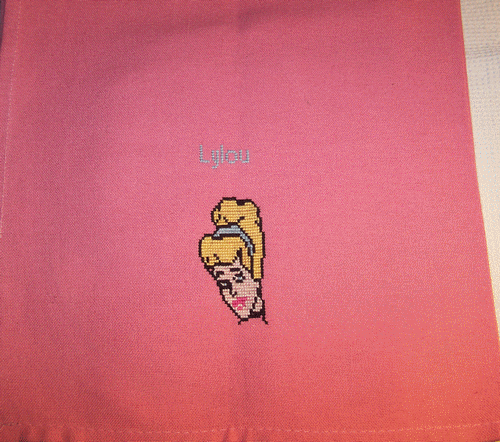 Commande pour l'amicale d'une serviette de table Cendrillon. Février 2009.
