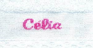Serviette et gant de toilette rose pour Célia. Mai 2007.