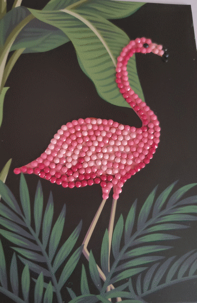 Pour l'anniversaire de Coline, carte en broderie diamand flamand rose. Juillet 2022.