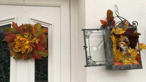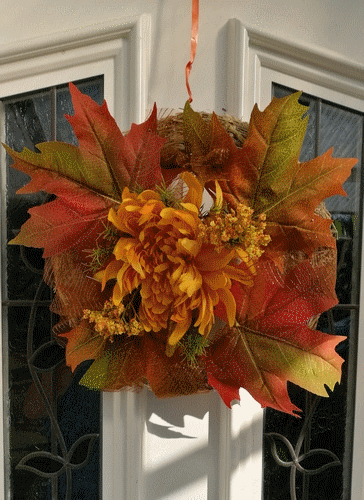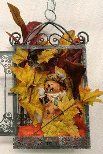 Toujours le même support....un épouventail en platre et des feuilles en plastiques et une couronne de paille... Octobre 2017