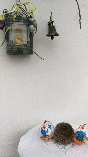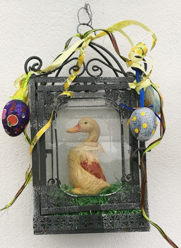 Toujours le même support... une canne en platre, des oeufs et rubans de Pâques...Avril 2017