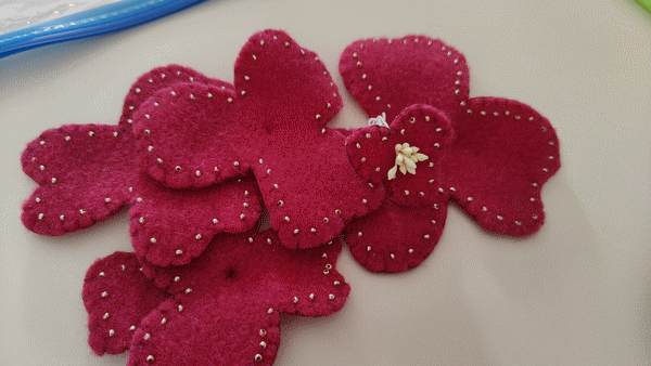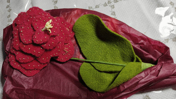 part, avec de la feutrine, chaque pétale a été