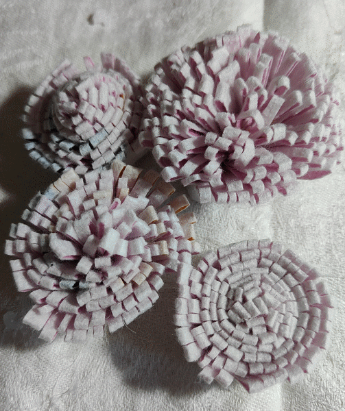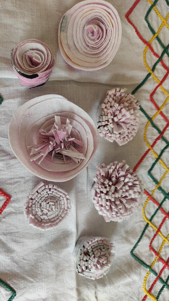 Fleurs en feutrine. Feutrine que Bruno m'avait ramené, fleurs et lierres pour décorer ma salle à manger. Avril 2024.