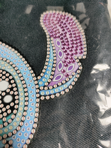 Tablier Stitch en broderie diamand. Juillet 2022.