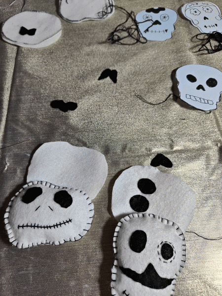 Bouquet de tête de mort en feutrine. Octobre 2023.
