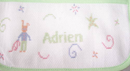 Bavoir pour Adrien. Modèle DMC. Décembre 2009.