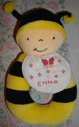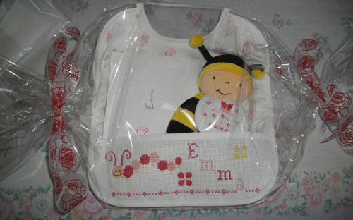 Pour Emma, première petite fille de Brigitte,copine du club de broderie à Prémilhat. Avril 2012.