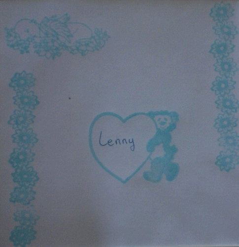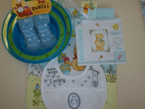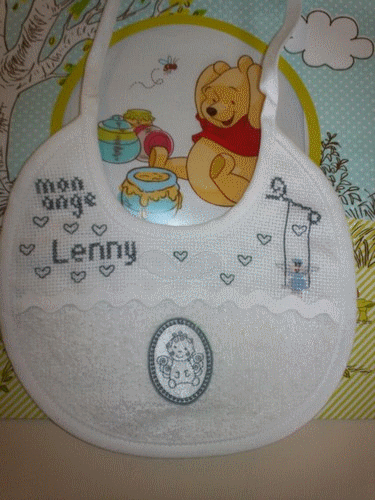 Pour Lenny, bavoir, fils et grille DMC. Mai 2013.