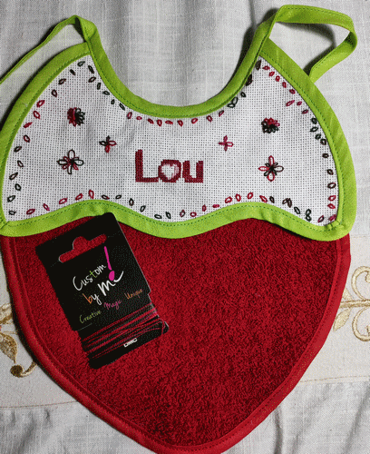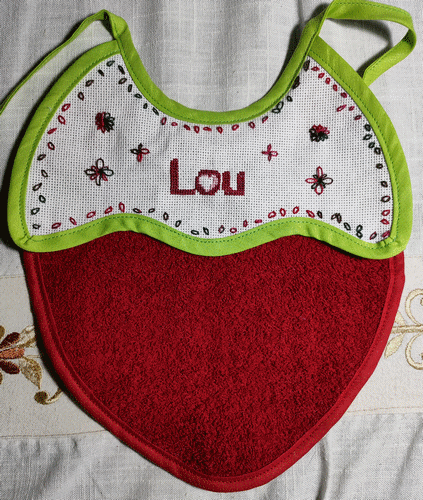 Pour Lou, bienvenue bébé. Point de croix et point de bouclette, fils DMC. Juin 2022.