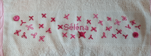 Pour Séléna, bavoir acheté à Noz, j'ai crée le prénom,