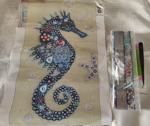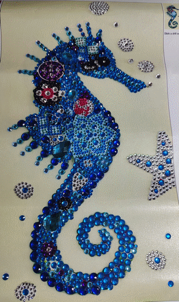 Hippocampe en broderie diamand. Janvier 2023.