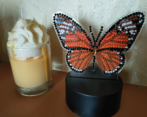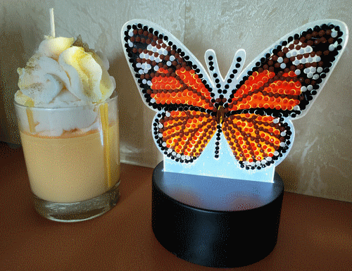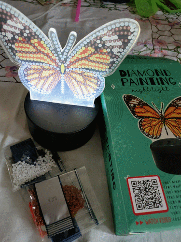 Lampe papillon en broderie diamand, acheté à Action. Février 2022.