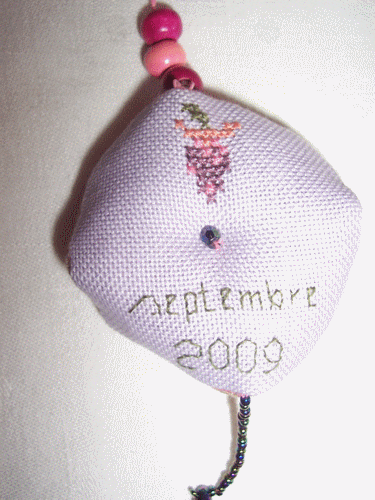 Etamine violette et marron, réalisé avec du fils DMC. Janvier 2010