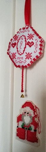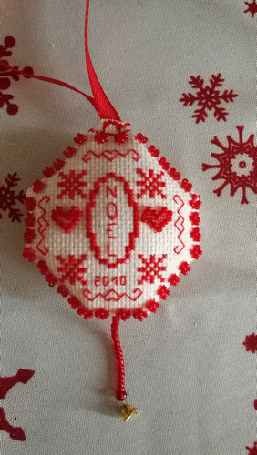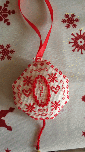 Boule de Noël perlée, réalisé sur de l'aïda pailletée acheté chez