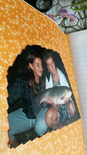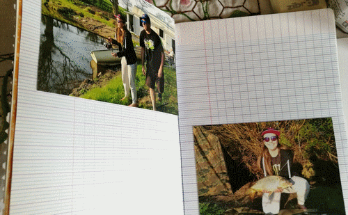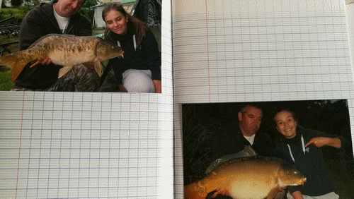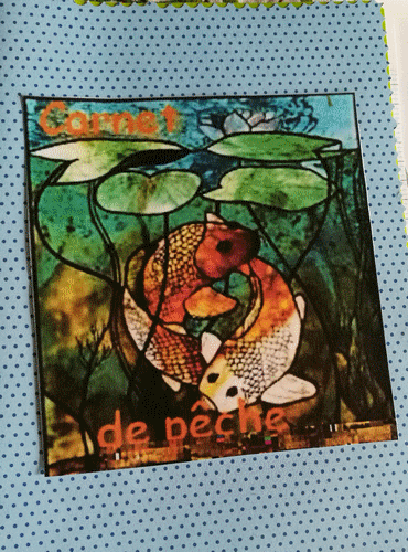 Cahier de pêche pour Andréa...simple cahier décoré par mes soins...image du net...photo de deux sessions de pêche avec tonton Bruno....Mai 2018.