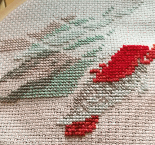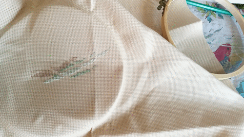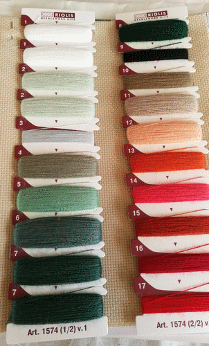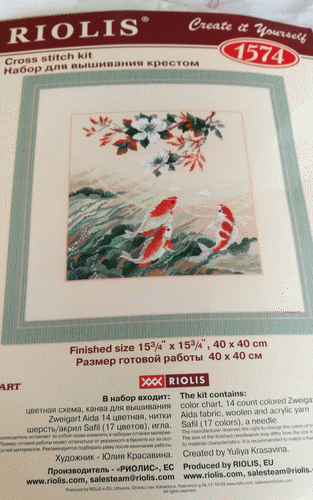 Carpes koï...Kit Riolis...Toile aïda 5,5 beige Zweigart...Laine fine... Diagramme en couleur... Août 2018.