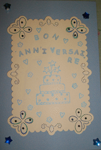Carte piquée, brodée et tampons. Novembre 2012