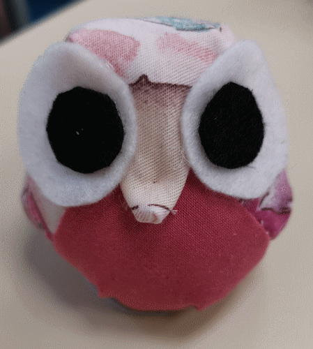 Chouette en tissu. Stage sur les activités de Noël avec de la récupération. La formatrice nous a proposé d'apprendre à faire cette chouette. Octobre 2019.