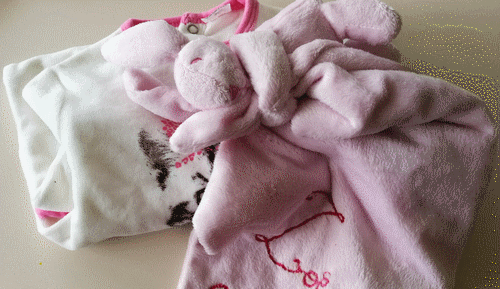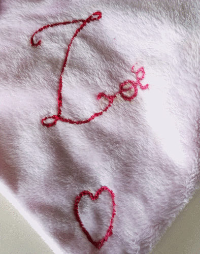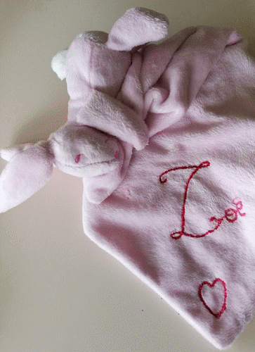 Doudou pour Zoé. Acheté chez Primark. Broderie traditionnelle, le modèle est ci-dessous. Octobre 2018.