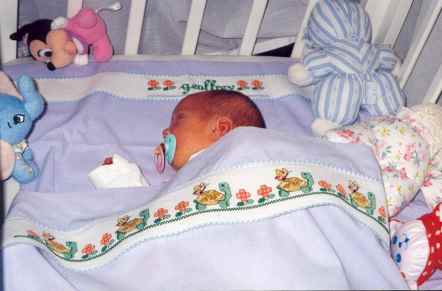 Etait compris le drap et la taie avec une bande aïda 5,5 bleue.