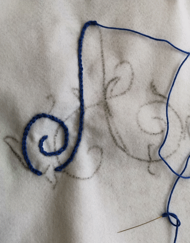 brodé sur de la feutrine blanche...Point de chainette avec du coton épais DMC ...Janvier 2019.