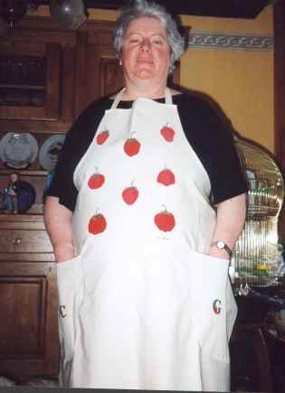 Les initiales de ma belle-mère pour mettre sur les poches d'un tablier décoré de fraises.