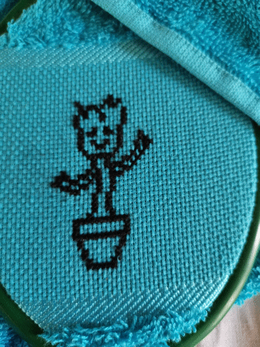 Serviette de toilette bleue turquoise achete a Buttinette. Je s'appelle GROOT!!. Juillet 2019.