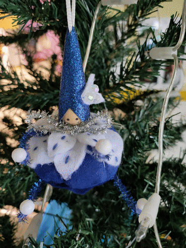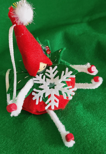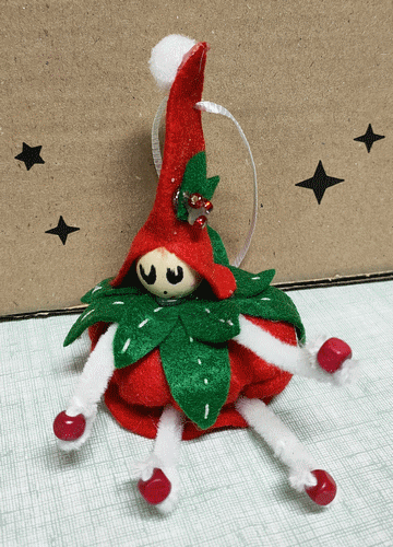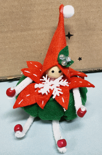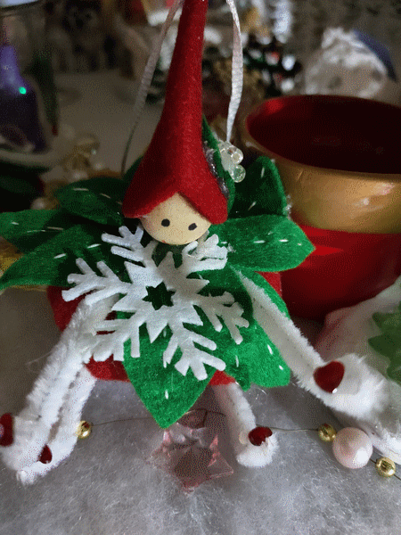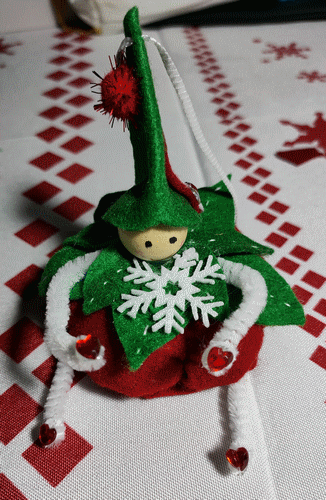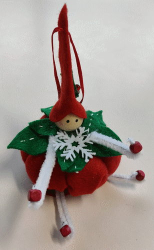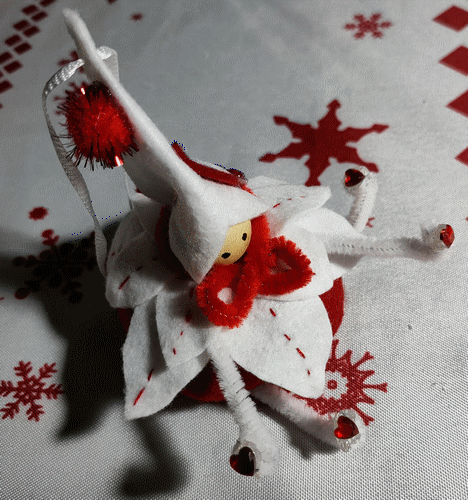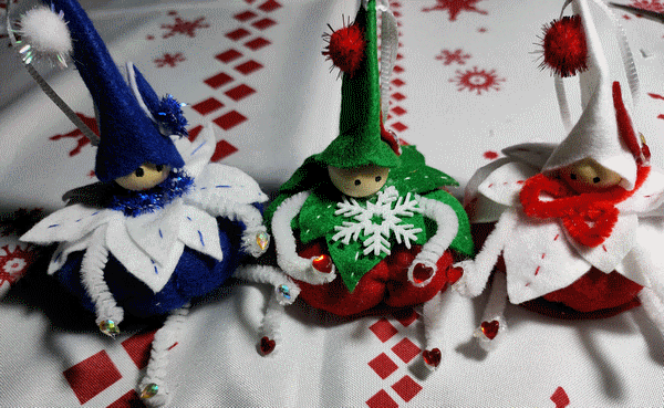 Lutins en feutrine. Pour décorer les sapins de chaque classe, puis pour offrir. Décembre 2021.