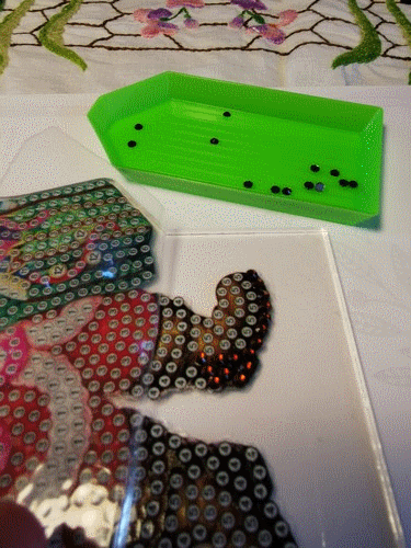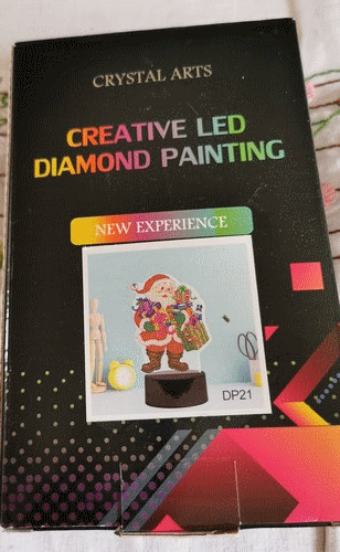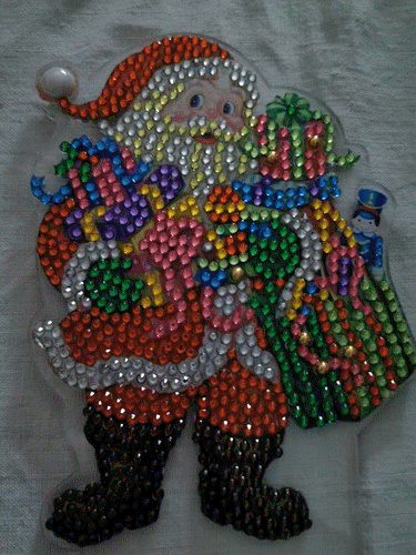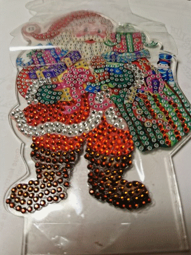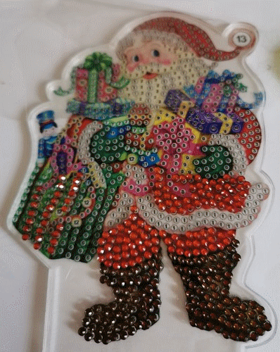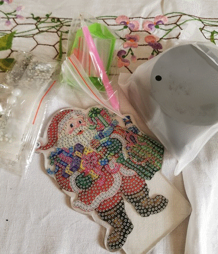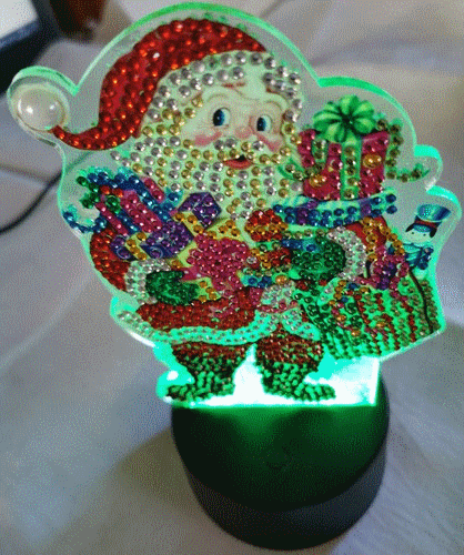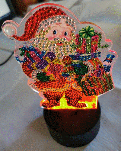 Père Noël en broderie diamant sur un socle lumineux. Octobre 2020.