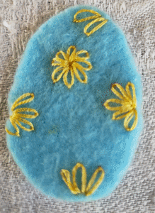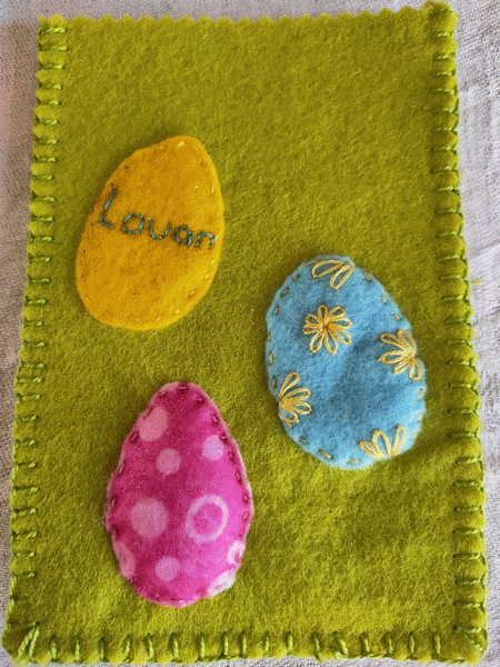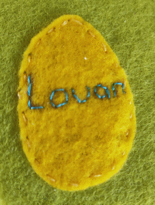 Pochette en feutrine pour l'anniversaire de Louan. Mars 2021.