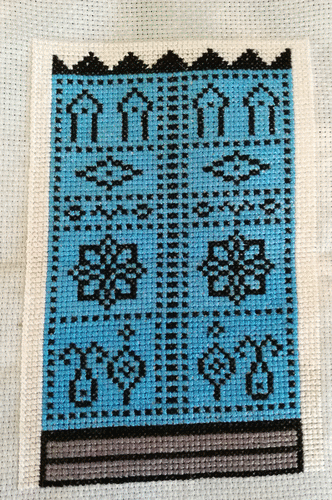 croix....Toile aida bleue marbrée, fils DMC. 1=996 2=blanc