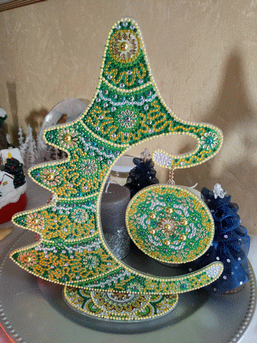 Sapin en broderie diamand, je trouve que l'éclat des perles rendent très bien pour Noël. Novembre 2021.