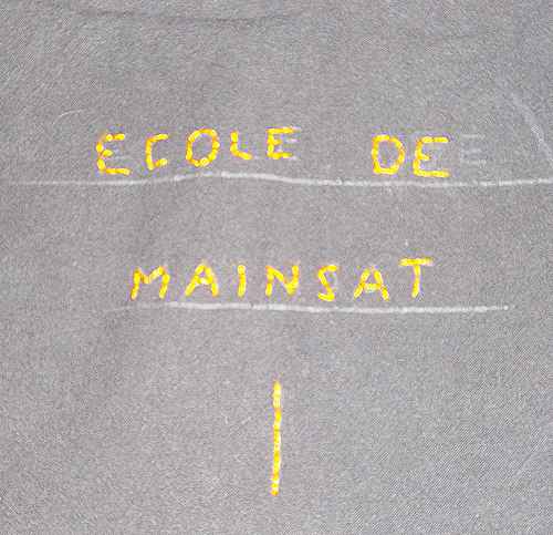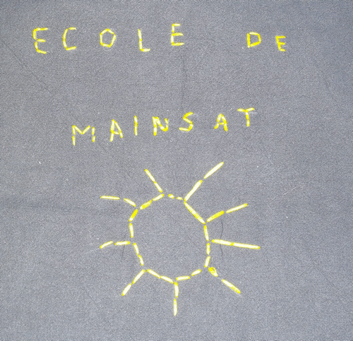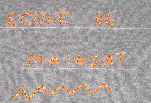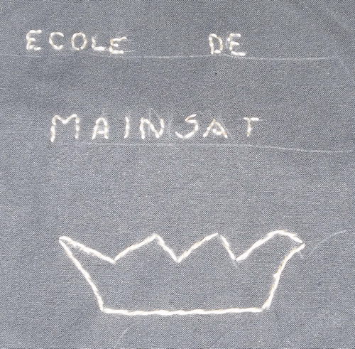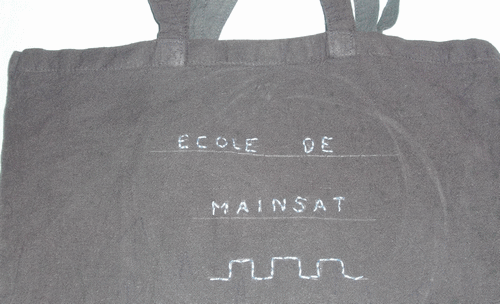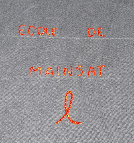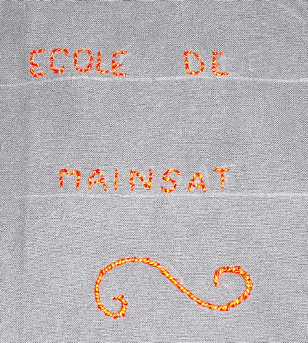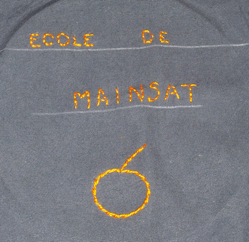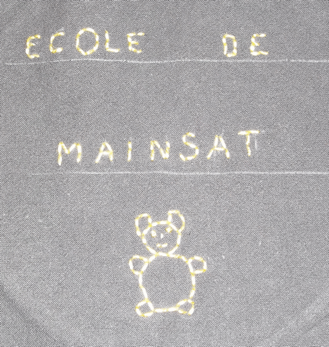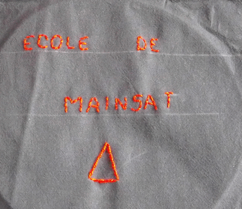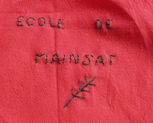 Sacs achetés chez VBS, teint en noir ou rouge en machine, brodé en broderie traditionnelle, avec du coton perlé. Janvier 2011.