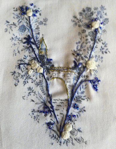 Créations originales. "V " imprimé sur du coton sergé, acheté en avril au salon des loisirs créatifs de Montluçon...