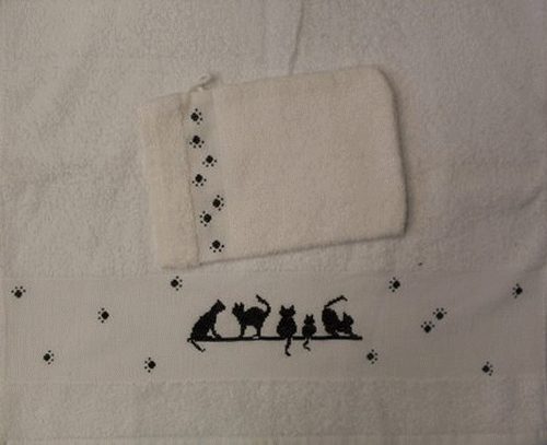 Serviette chat, acheté à Créarmor, grille gratuite de Novalee. Novembre 2009
