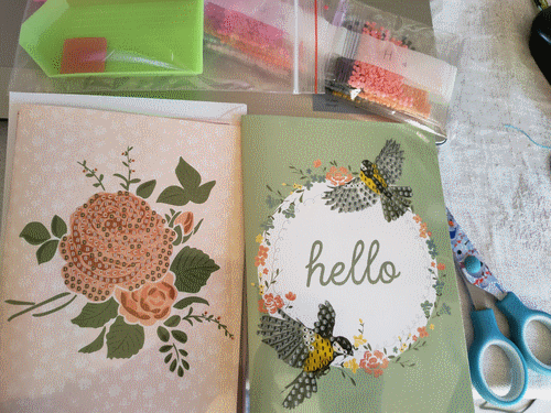 Carte broderie diamand, trouvé à Action. Le chat pour ma fille, Gwendoline. Mars 2021.