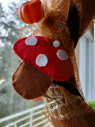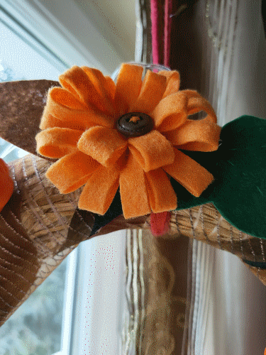 Couronne d'Automne. De la paille, papier crépon, tulle brillant et feutrine. Septembre-Octobre 2021.