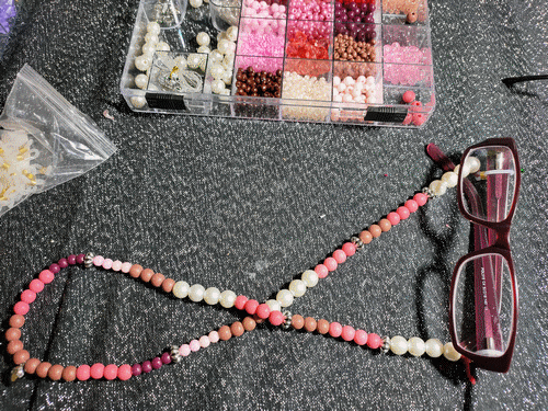 Perles achetées chez Action, pour un fil à lunettes. Mai 2022.