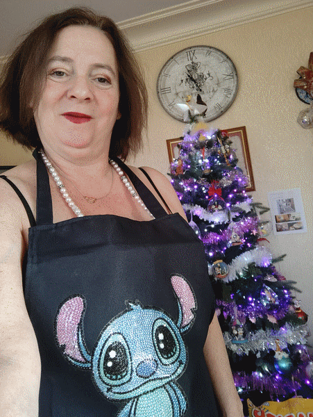 Tablier Stitch en broderie diamand. Juillet 2022.
