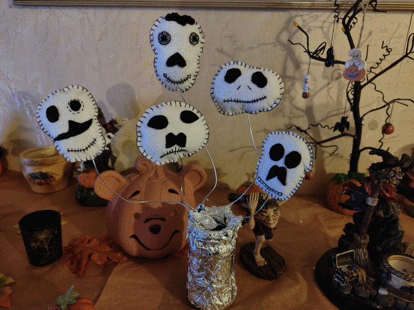 Bouquet de tête de mort en feutrine. Octobre 2023.