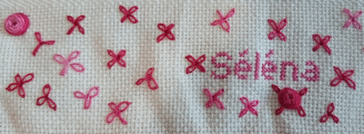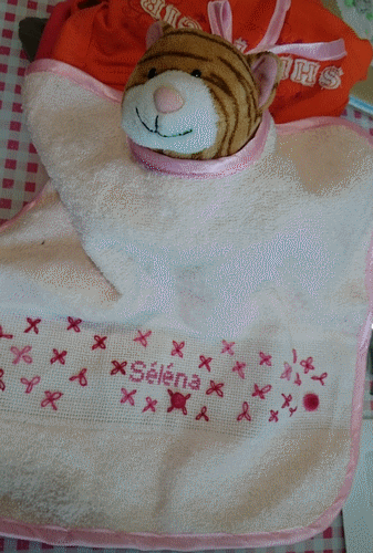 Pour Séléna, bavoir acheté à Noz, j'ai crée le prénom,