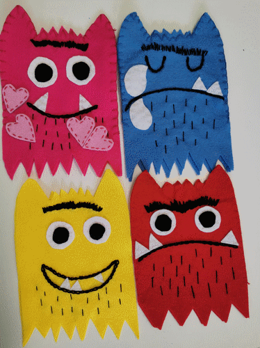 Pour la moyenne section. D'après le livre "La couleur des émotions". Marionettes en feutrine. Octobre 2019- Mars 2020.