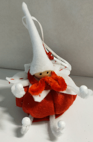 Lutins en feutrine. Pour décorer les sapins de chaque classe, puis pour offrir. Décembre 2021.