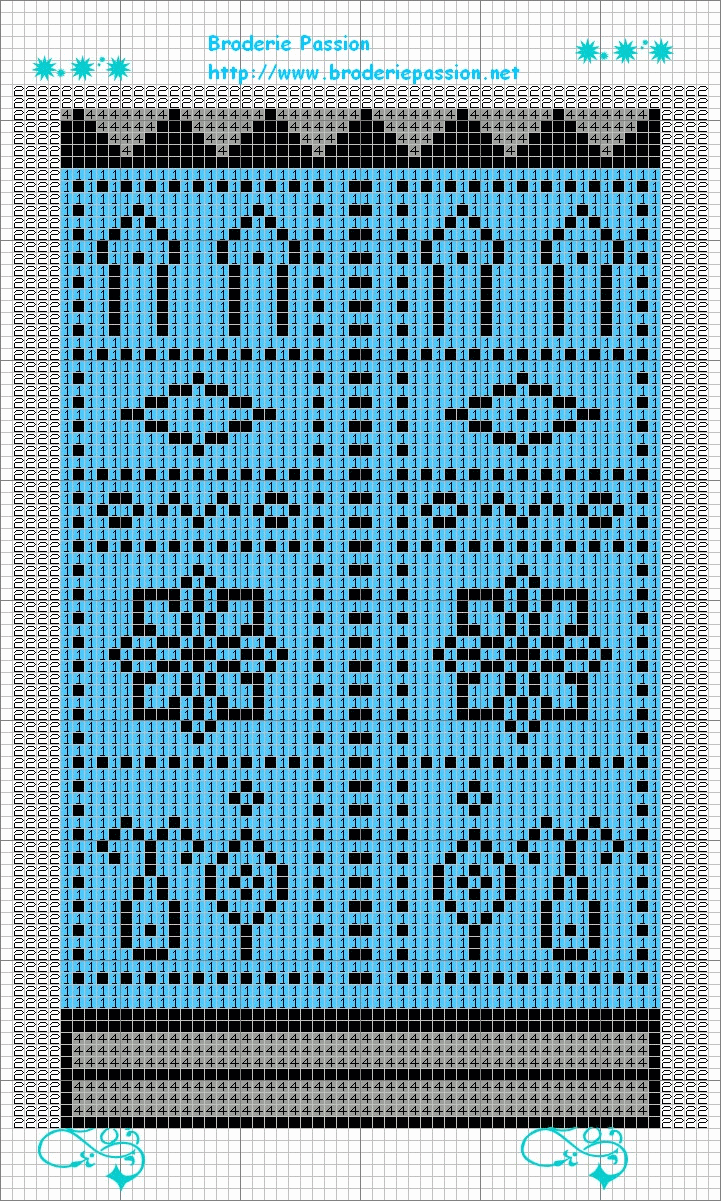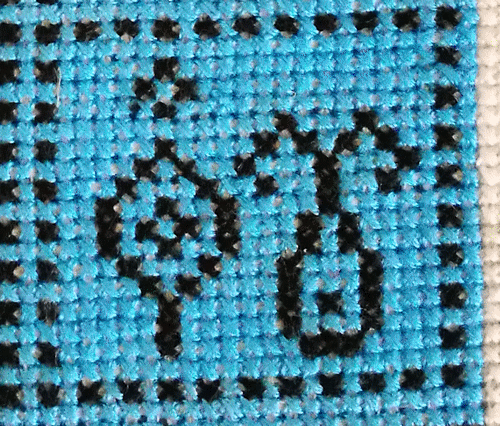 croix....Toile aida bleue marbrée, fils DMC. 1=996 2=blanc