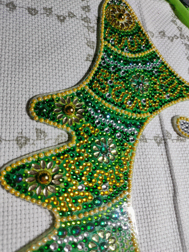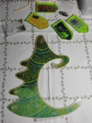 Sapin en broderie diamand, je trouve que l'éclat des perles rendent très bien pour Noël. Novembre 2021.