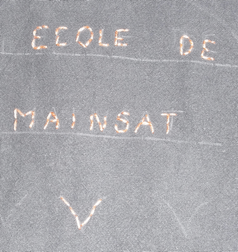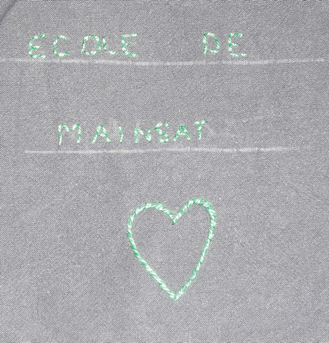 Sacs achetés chez VBS, teint en noir ou rouge en machine, brodé en broderie traditionnelle, avec du coton perlé. Janvier 2011.